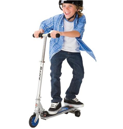The Razor Carvr kick scooter is a unique scooter/skateboard hybrid. The combination of skateboard truck and scooter steering with limiter provide a unique carving experience . Features a patented folding mechanism for easy fold and carry, dual rear wheel footbrake, 125mm front urethane wheel and 62mm rear wheels equipped with ABEC 5 high speed bearings to create a riding experience you have to try to believe……..